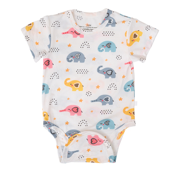 Tutina per Neonati con Elefante Cartoon, Chiusura Magnetica, in Bambù e Spandex, Manica Corta Unisex, Cambio Rapido, Logo Personalizzabile, Morbida