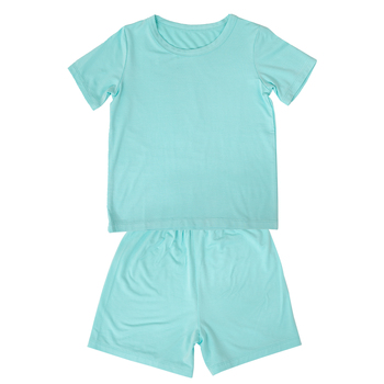 Set Pigiama per Bambini 95% Bambù 5% Spandex Blu Manica Corta Pantaloncini Tinta Unita Unisex Abbigliamento da Notte per Bambini Design Personalizzato Logo Etichetta