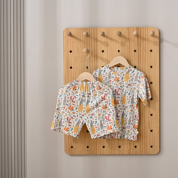 Set Pigiama per Bambini con Stampa Personalizzata di Orso, Coniglio e Volpe, 95% Bambù 5% Spandex, Set con Pantaloncini, Logo Personalizzato, Unisex